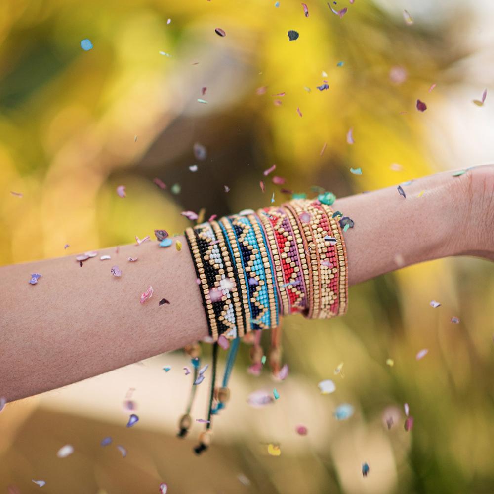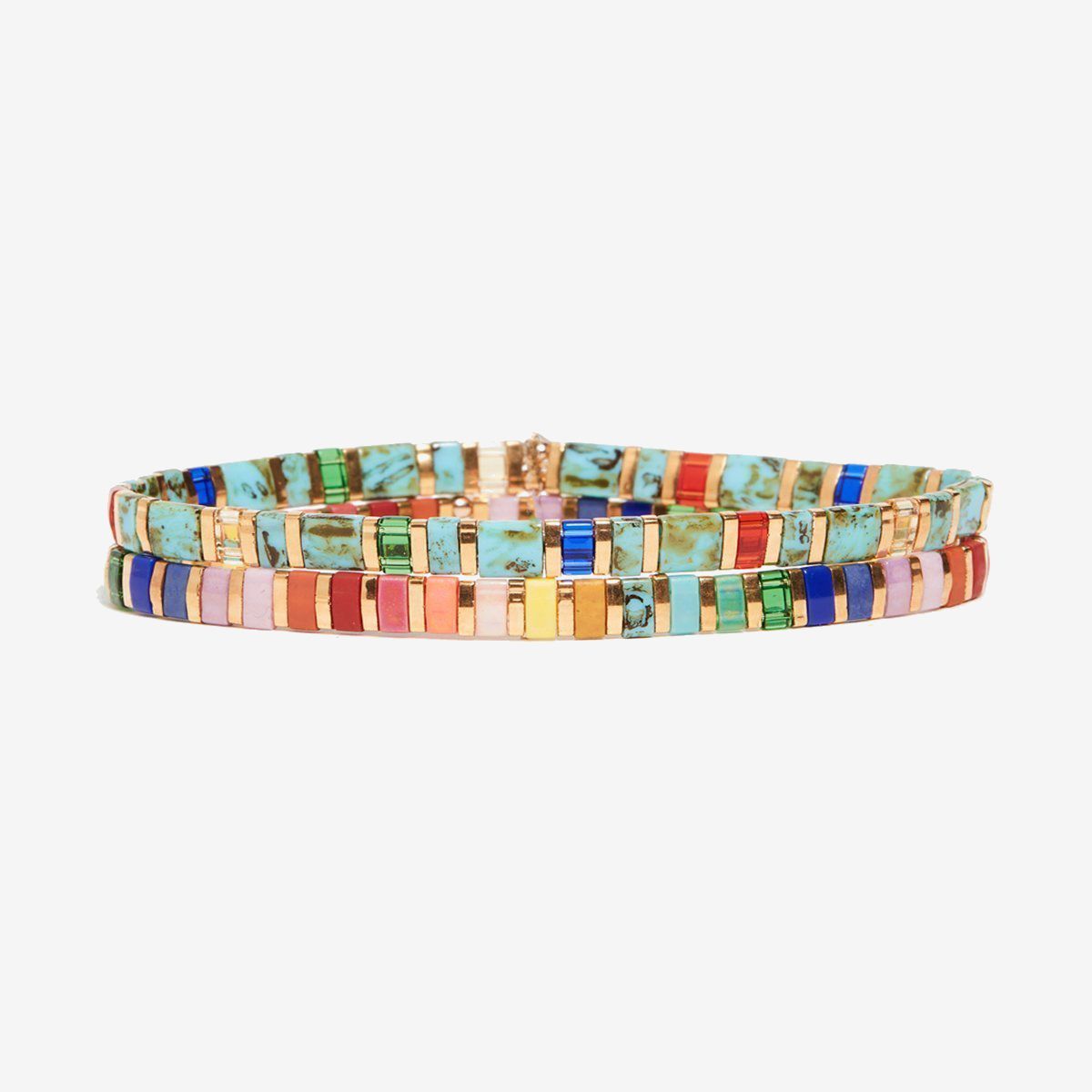Designed for women who want to feel feminine and look effortlessly put together, Amelia Rose’s Birth Stone Necklace provides a thoughtful touch of customization without breaking the bank. Similarly, Shashi’s Tilu Bracelets are a color-forward piece that can be worn every day.