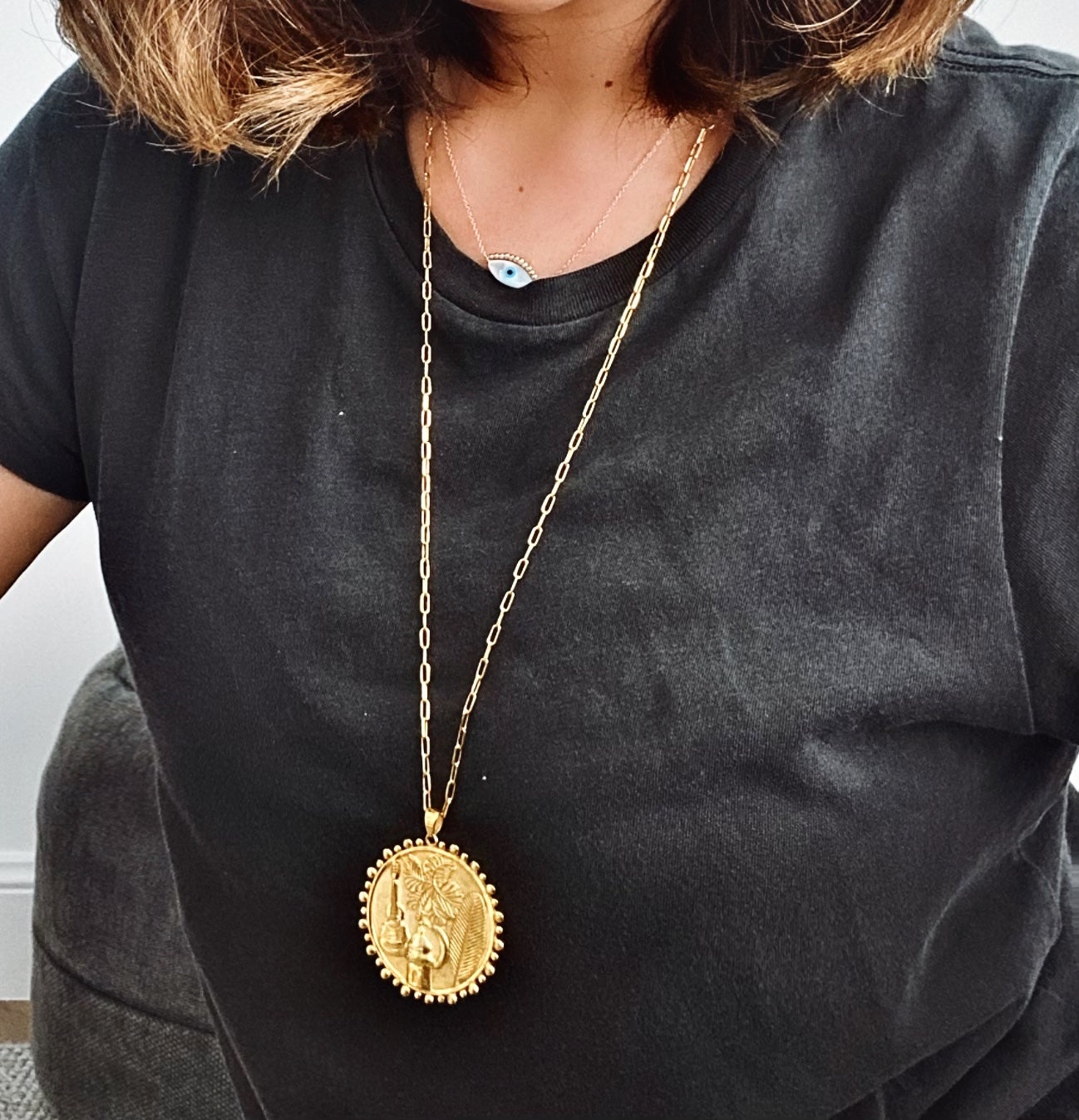 Ira Evil Eye Necklace by Kozakh paired with the La Isla Necklace by Jam and Rico
