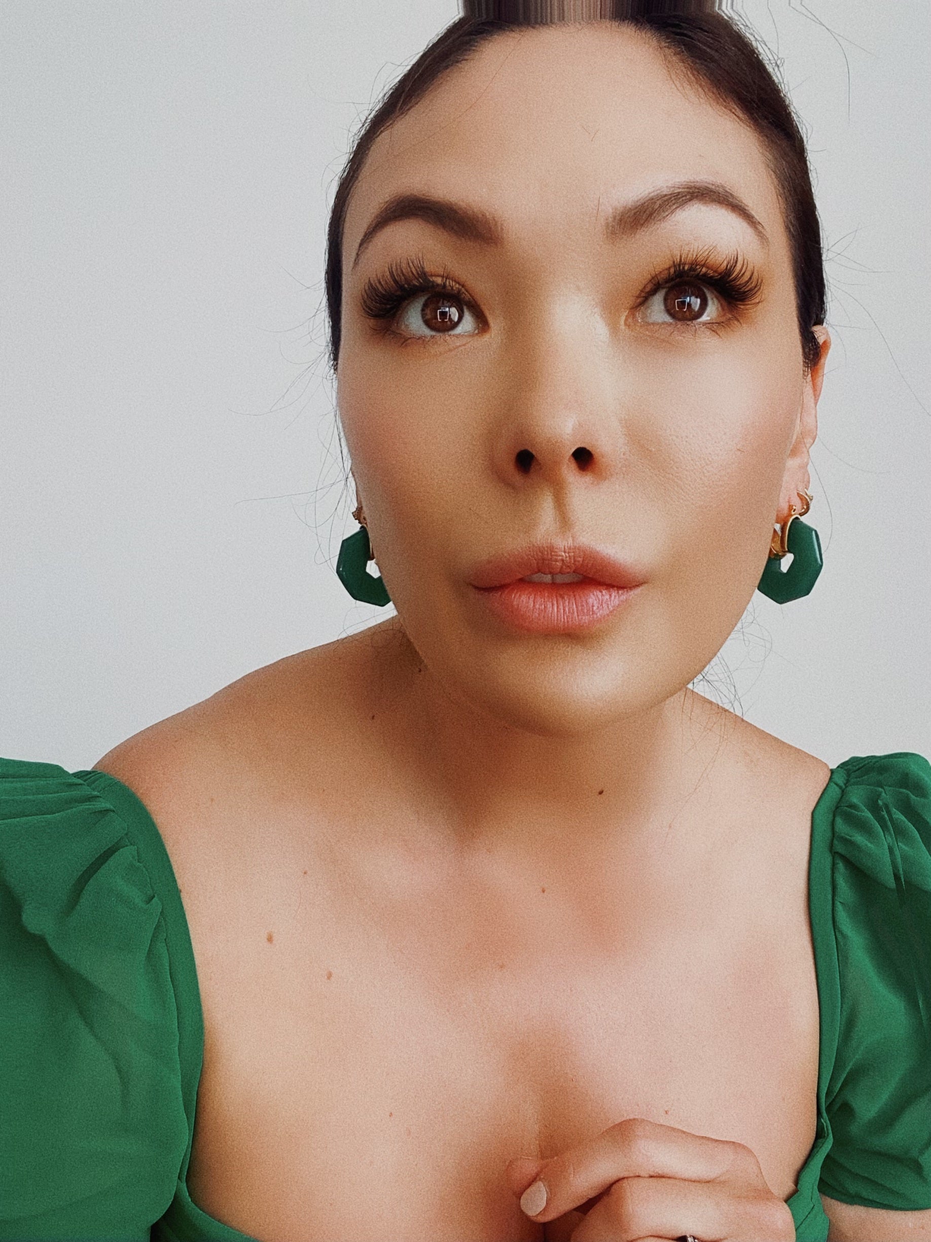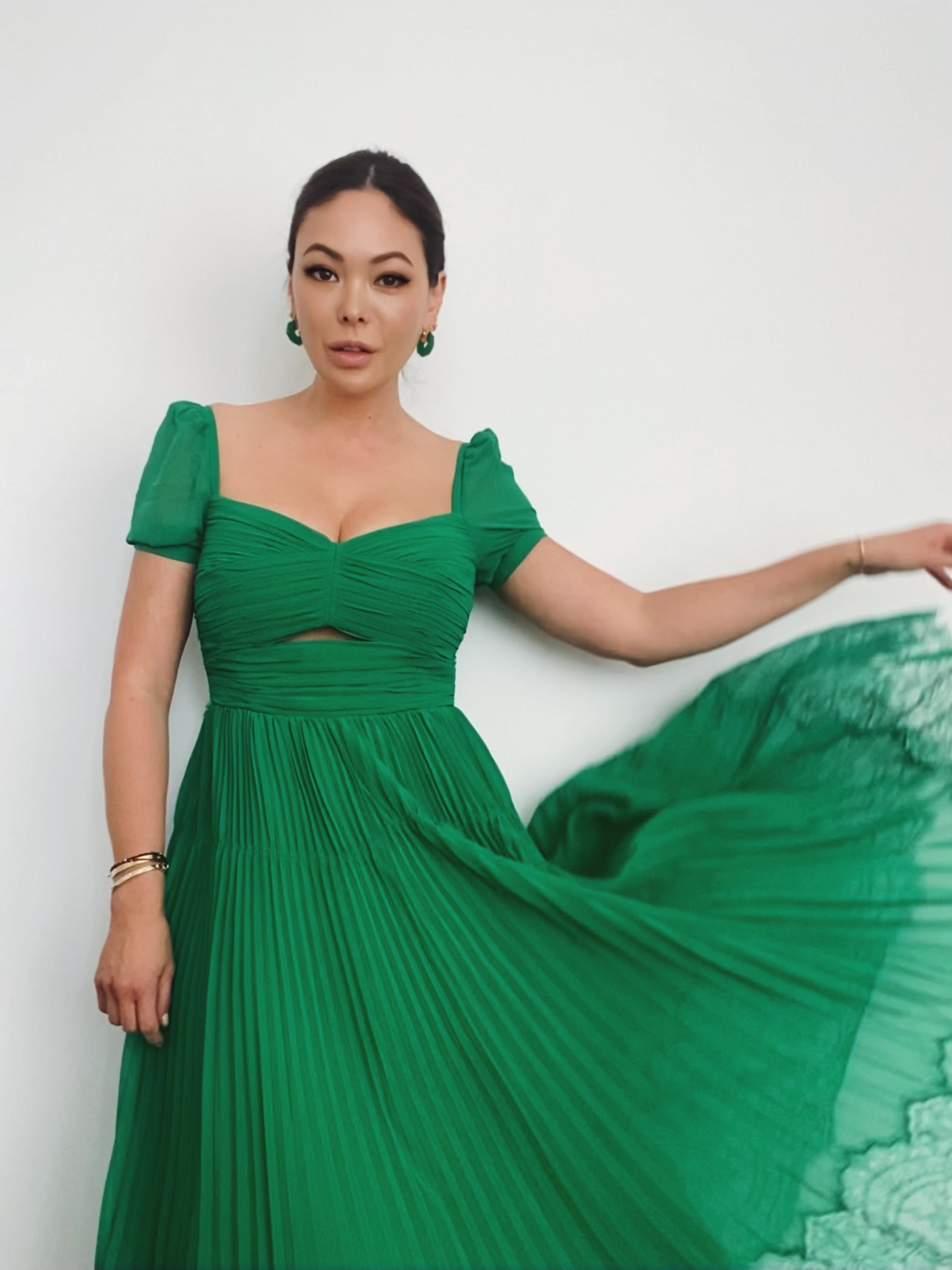 The Sphinx jade colored earrings by Shyla were the perfect accessory. The pretty green color and their gorgeous textured design perfectly echoed the pleats in my dress.