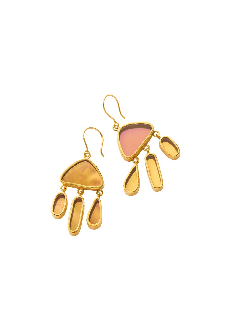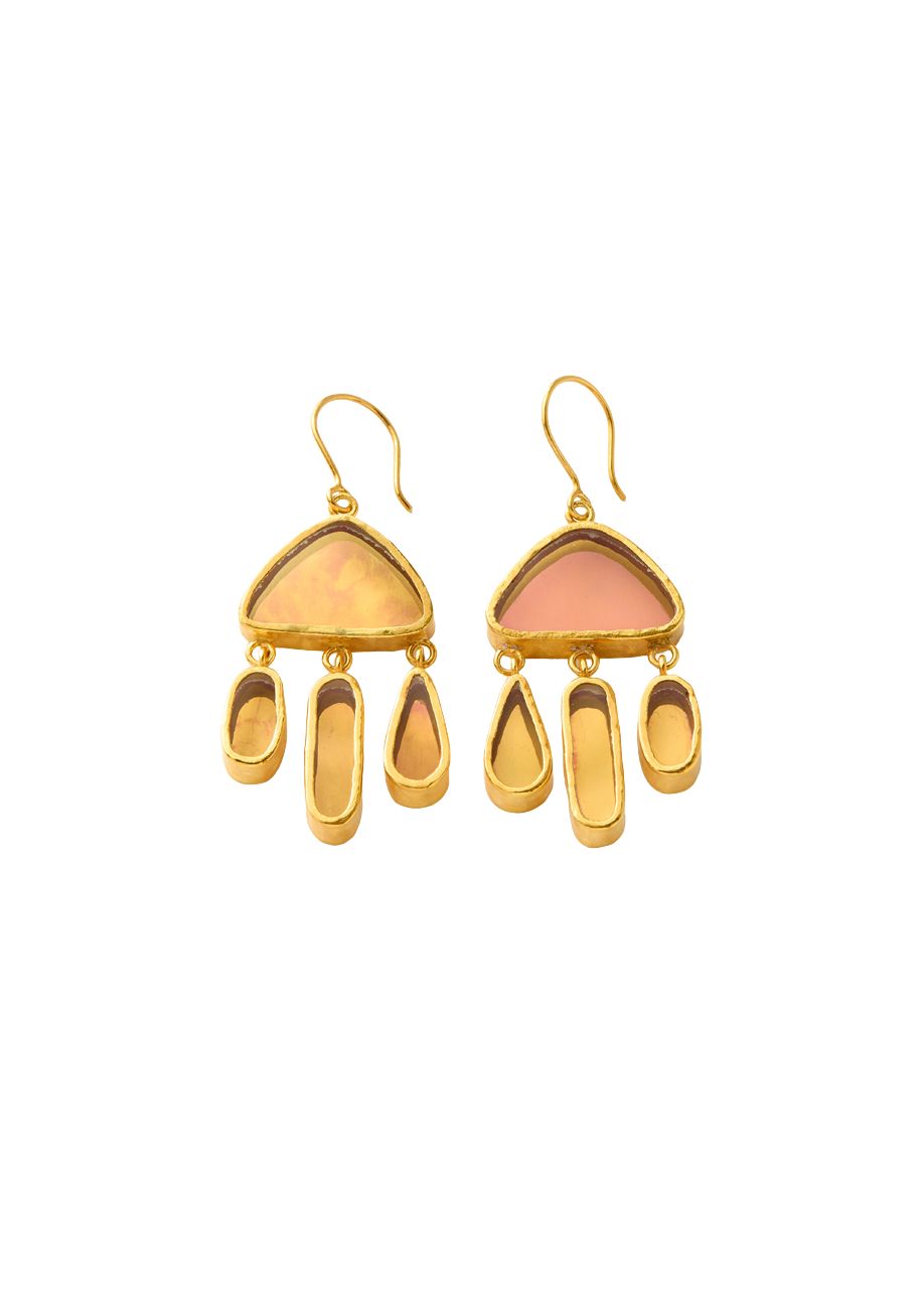 WHAT IT IS: 18kt Gold Plated Sterling Silver & Pink Glass Earrings