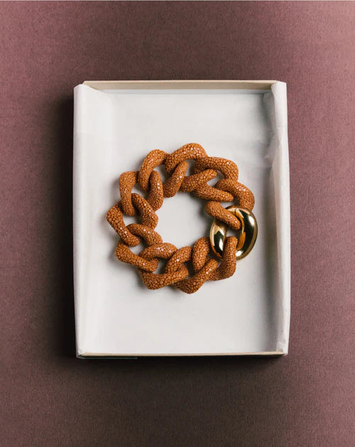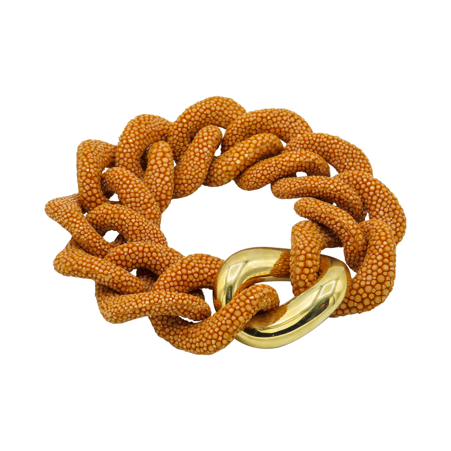 - This bracelet is made from galuchat, a durable material made from the skin of stingrays and sharks.