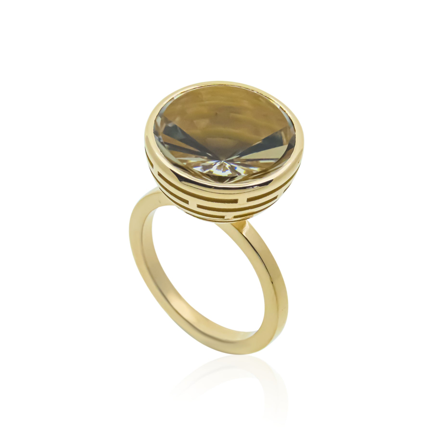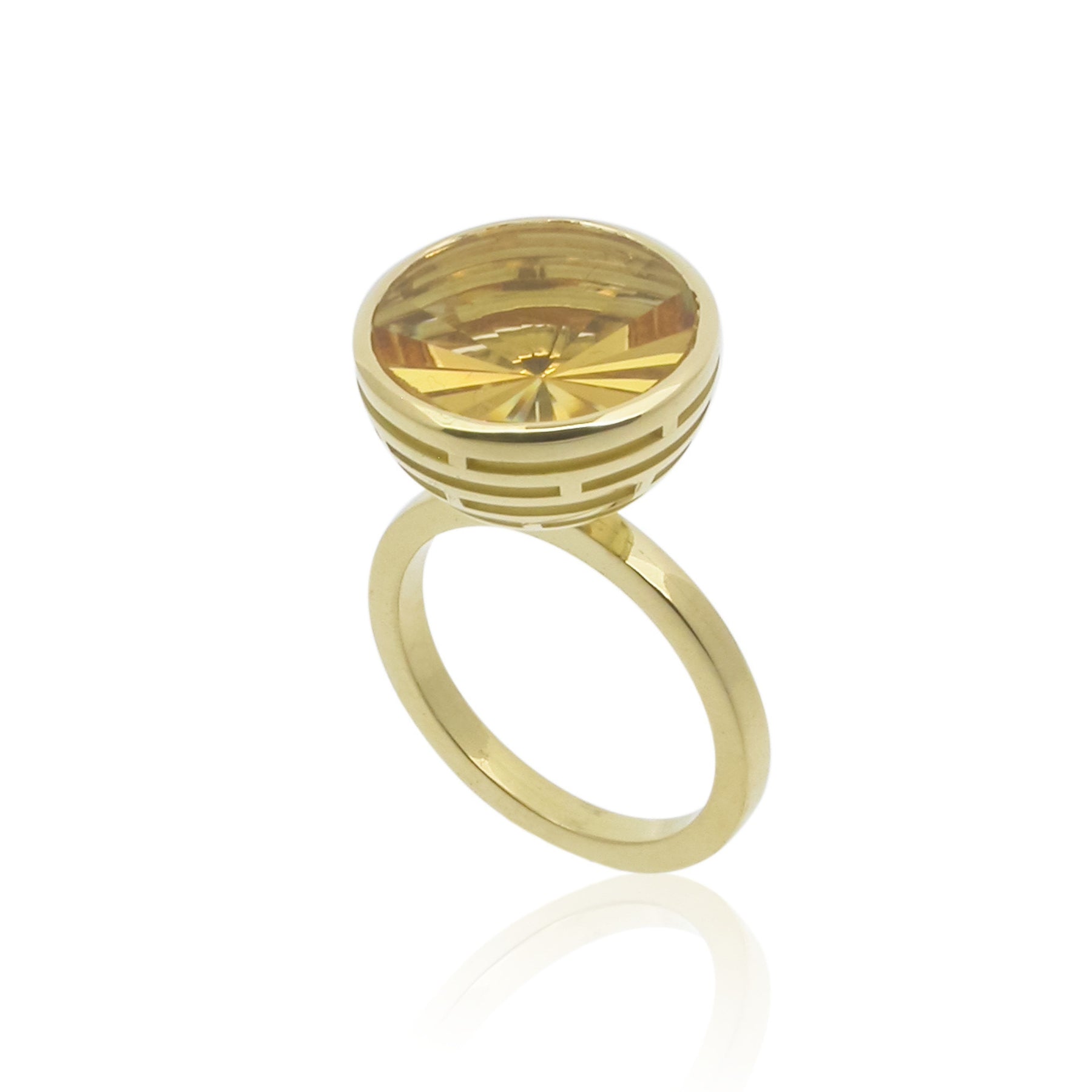WHAT IT IS: Labyrinth 18K gold, citrine and smokey quarts ring