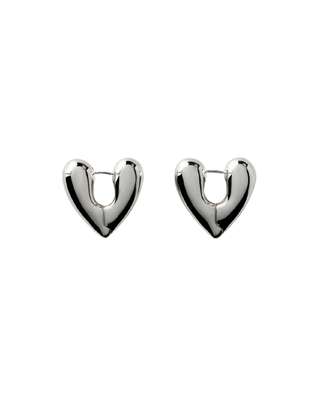 WHAT IT IS: Large silver statement heart hoops with a sculptural heart-shaped design.