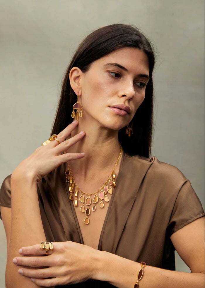 WHAT IT IS: 18kt Gold Plated Sterling Silver & Pink Glass