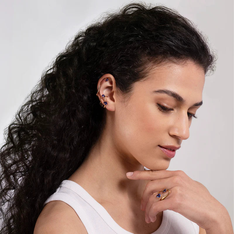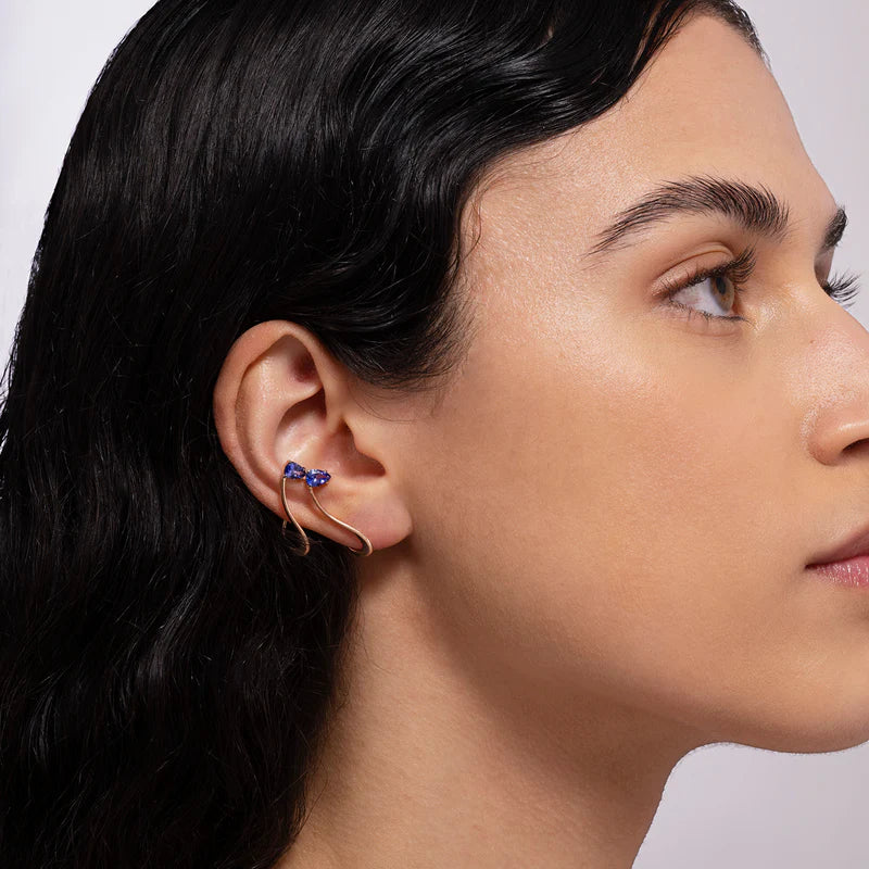 WHAT IT IS: Unpierced ear jewel crafted in 18k rose gold and set with a 0,5 carat pear-shaped Tanzanite.